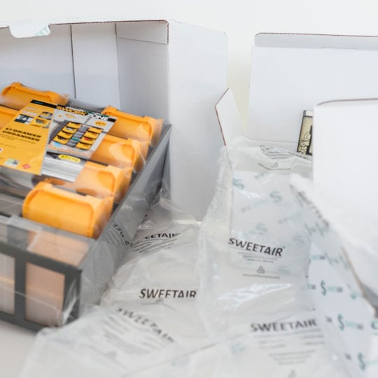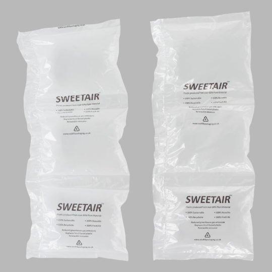 The air-filled bioplastic creates a barrier between the box and your product, protecting it from any potential knocks and scrapes that would otherwise damage your product. Works with our AirBox Air Pillow Machine. 91% BioPlastic Air Pillow Film Roll